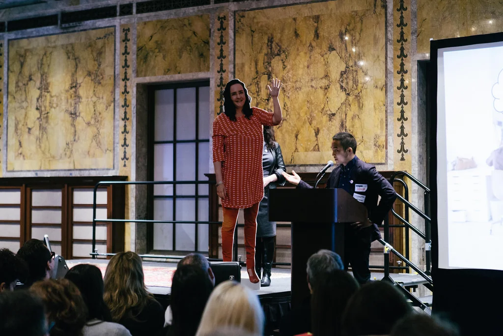 In February of 2014 Tina Roth Eisenberg (a.ka. swissmiss), the founder and CEO of CreativeMornings, missed her second event in CM/NYC history. Team CreativeMornings thought it would be fun to surprise Tina and show her that even though she was not physically at the event, she could be there in spirit as a cardboard cut-out.